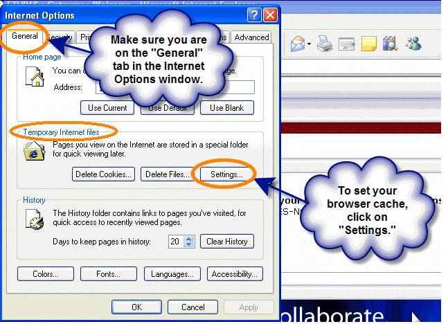 2) Click on the General tab > Under Browsing History